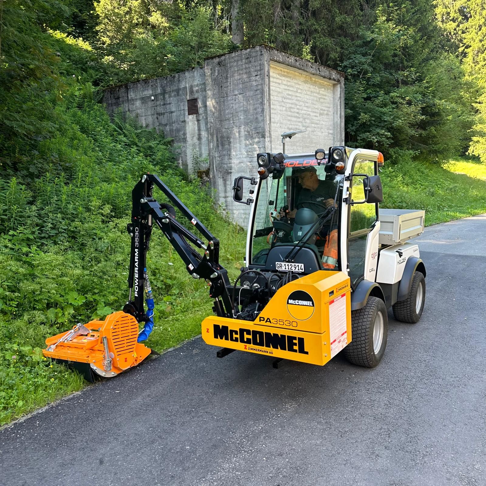 Erfolgreiche Ablieferung eines McConnel BMS 3530 Auslege-Mulchers mit Humus SMH 085 Mähkopf an die Axpo Hydro Surselva AG in Sedrun.