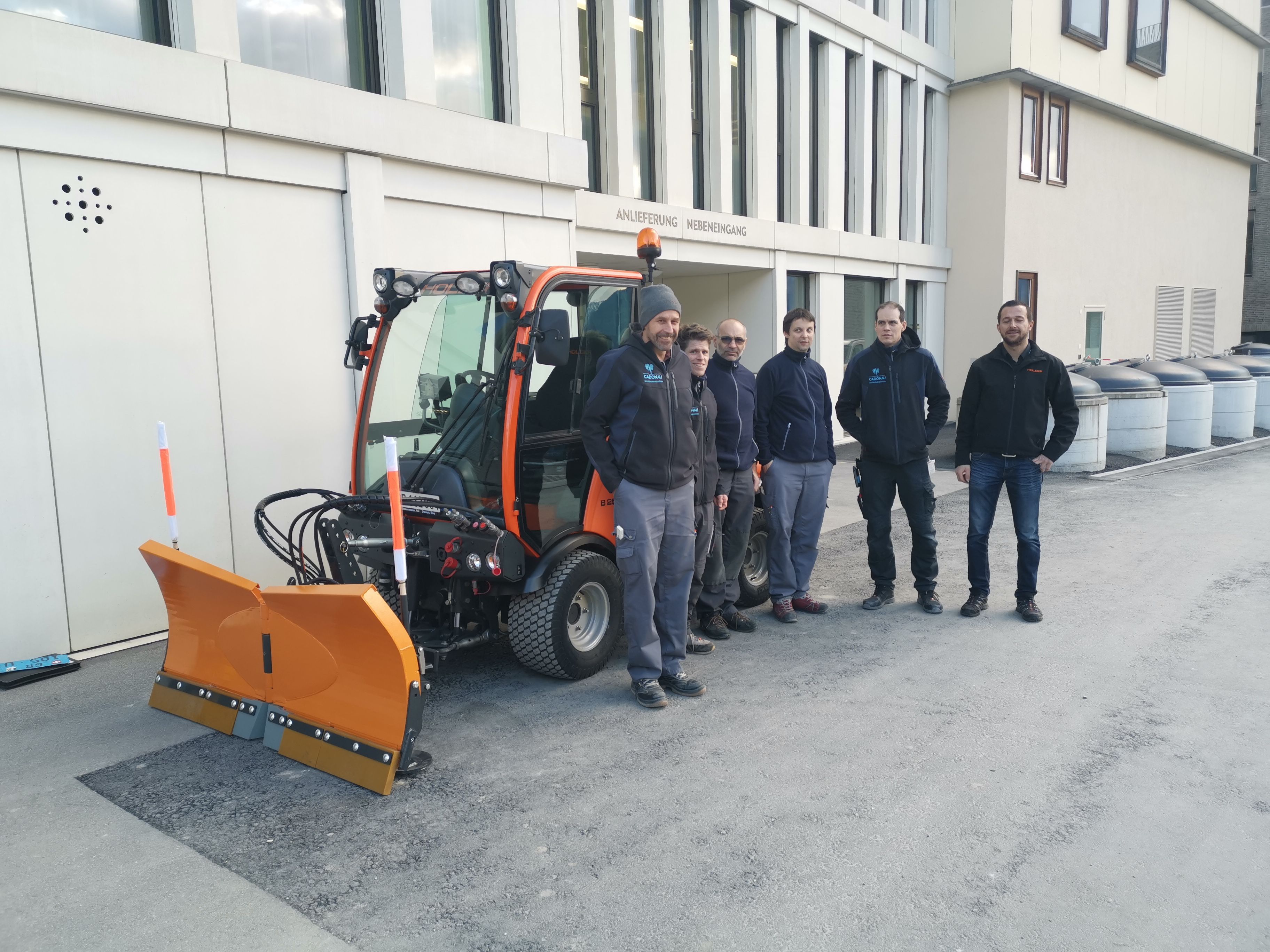 Wir durften der Firma Trumpf Schweiz AG einen neuen Holder X45 mit Zaugg Schneefräse SF40-42 L120 und Zaugg Schneepflug G3-160 für den Wintereinsatz, einen Humus Mulcher, eine Wischmaschine X3 von Holder und einen Sichelmäher von Kalinke für den Sommerbetrieb liefern.