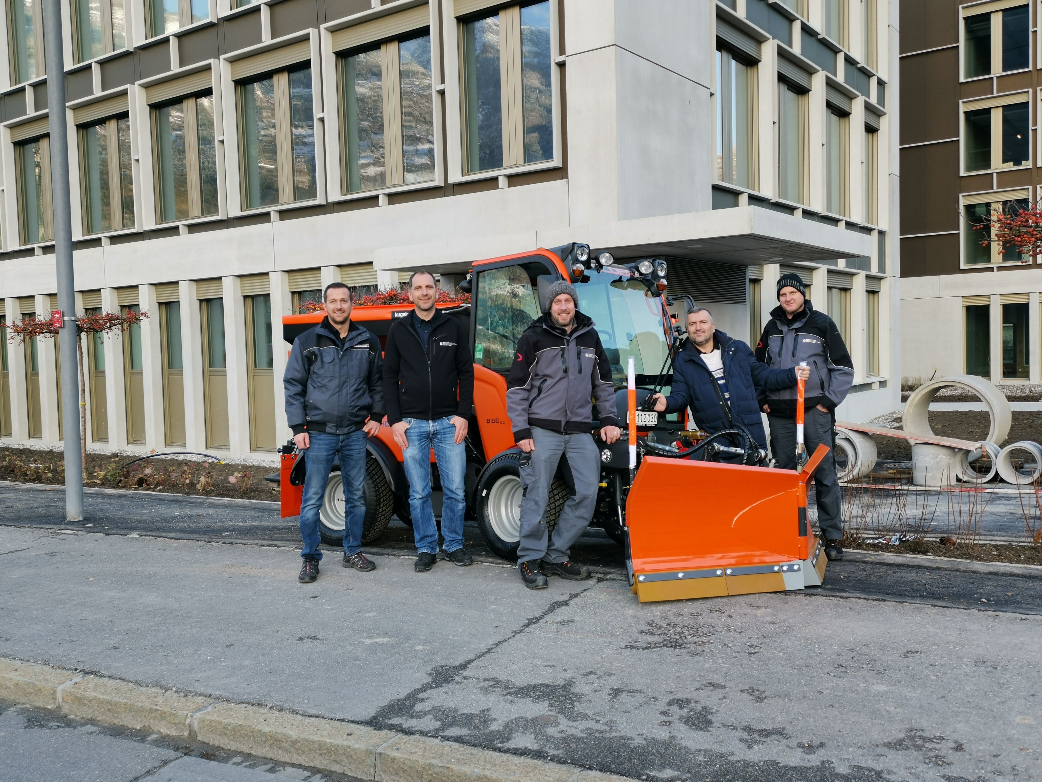 Das Team der Alterssiedlung Cadonau in Chur durfte einen Holder B250 Vorführer mit neuem Schneepflug VS160 von Kugelmann entgegen nehmen.