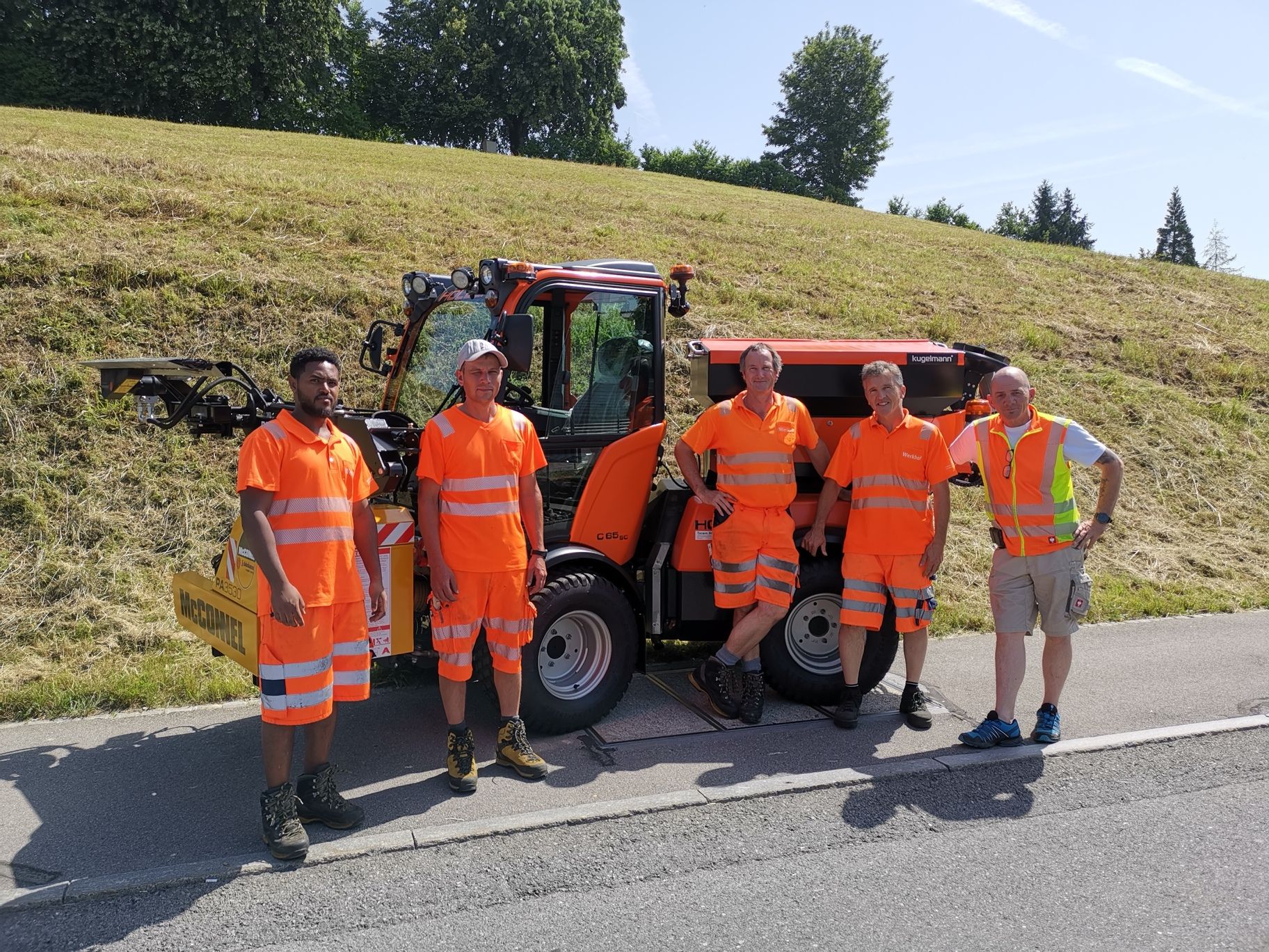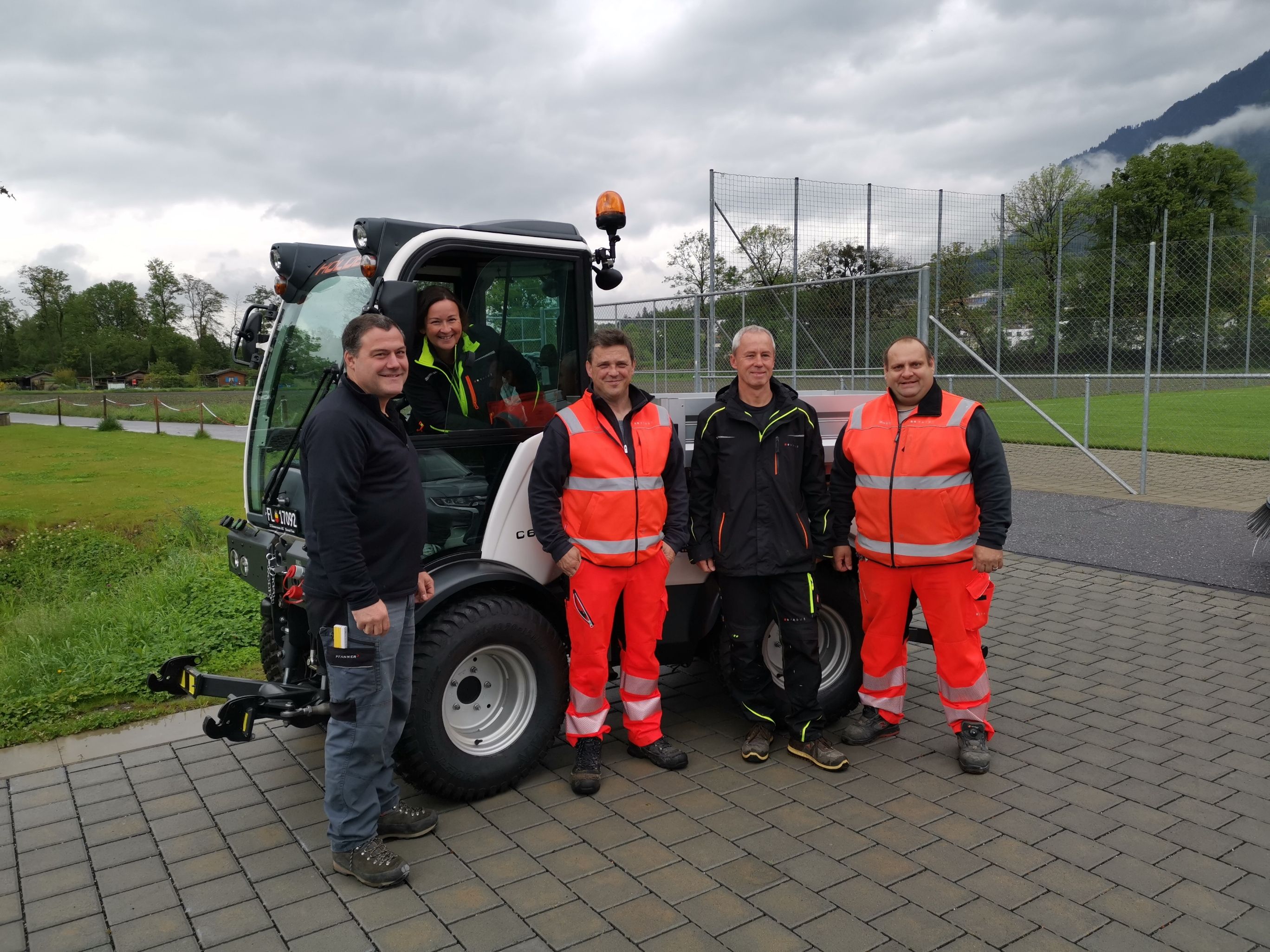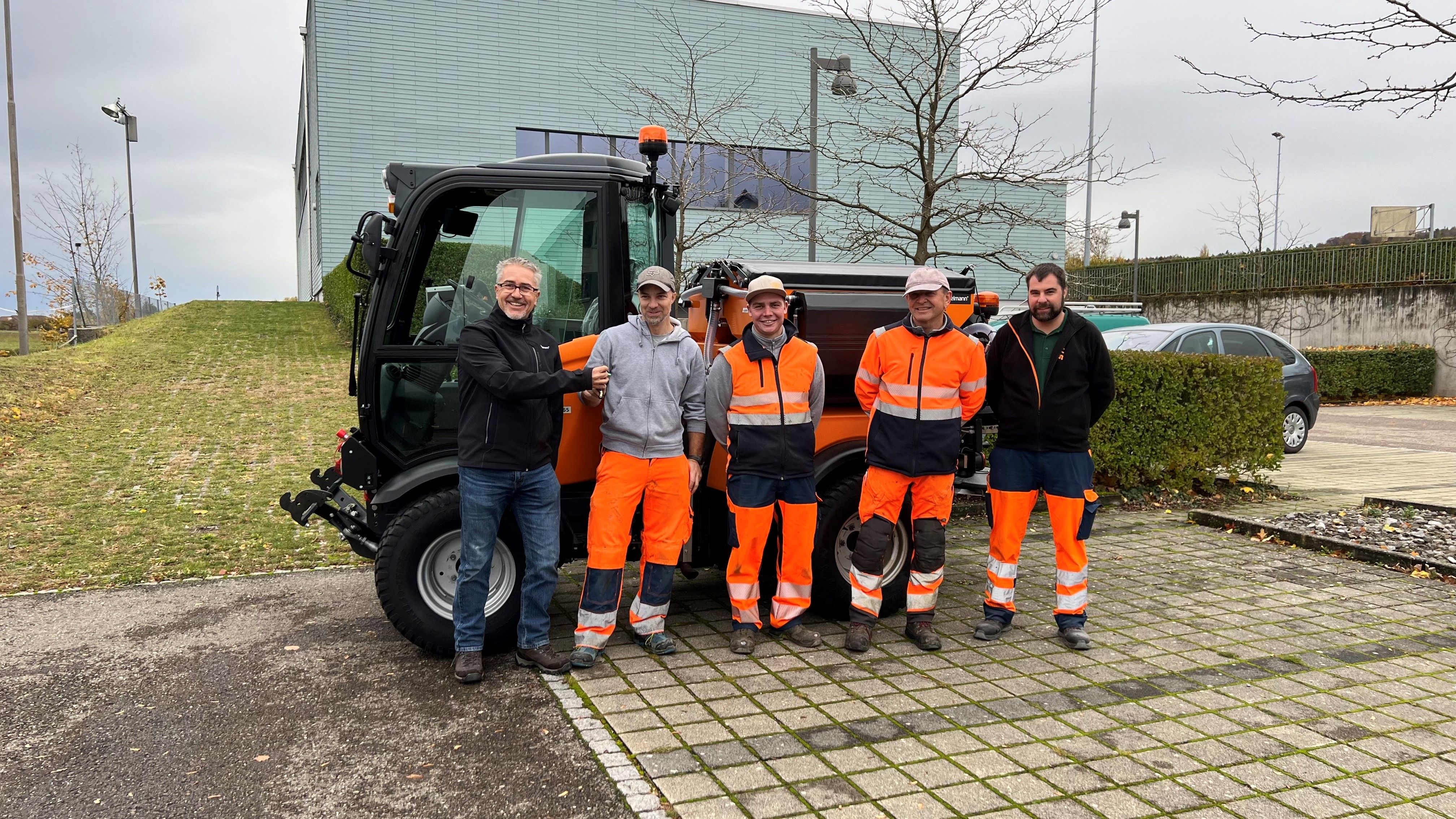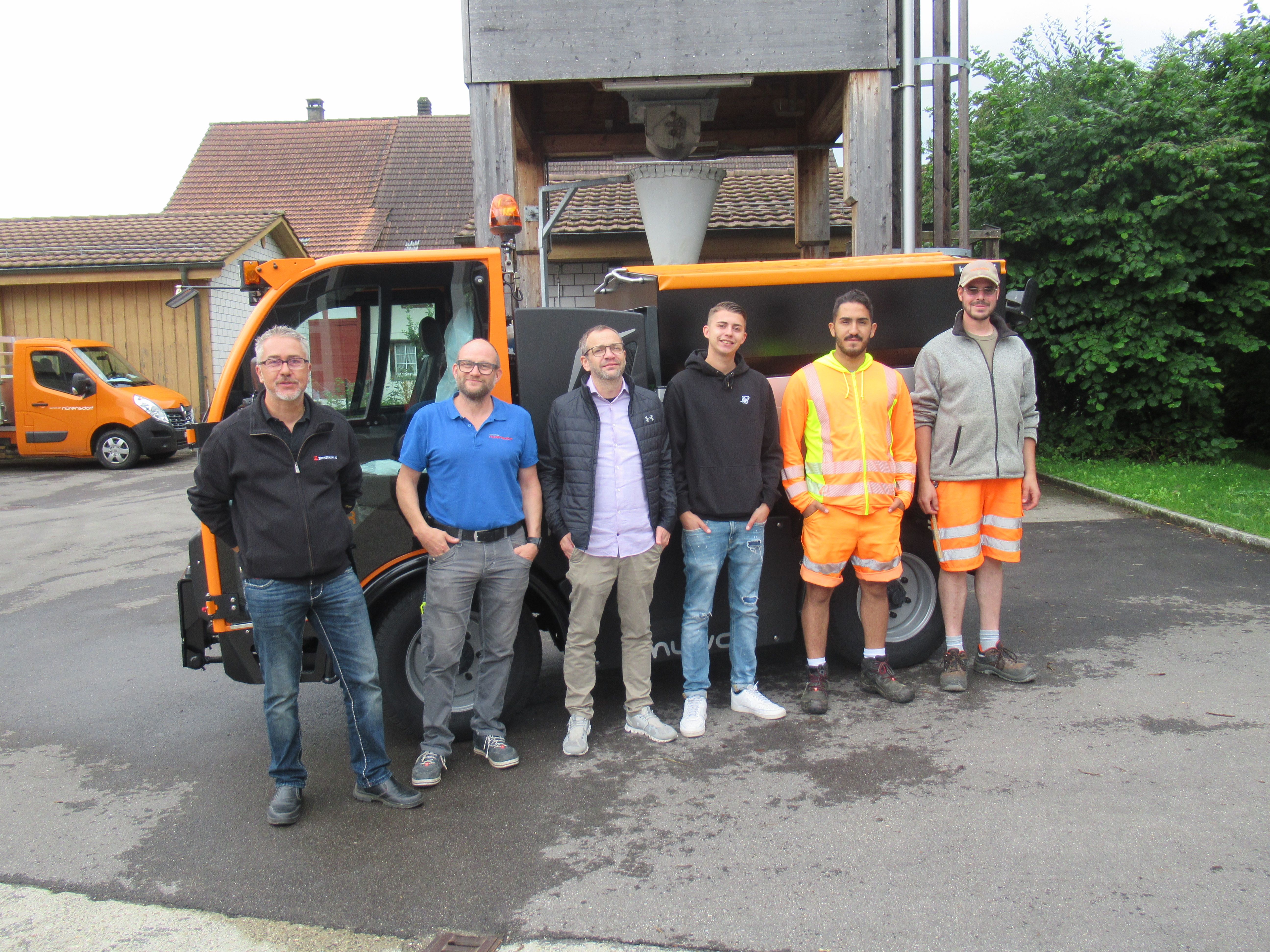 Werkhof Leiter Herr Gérald Gavin und sein Team freuten sich über das neue Gerät.