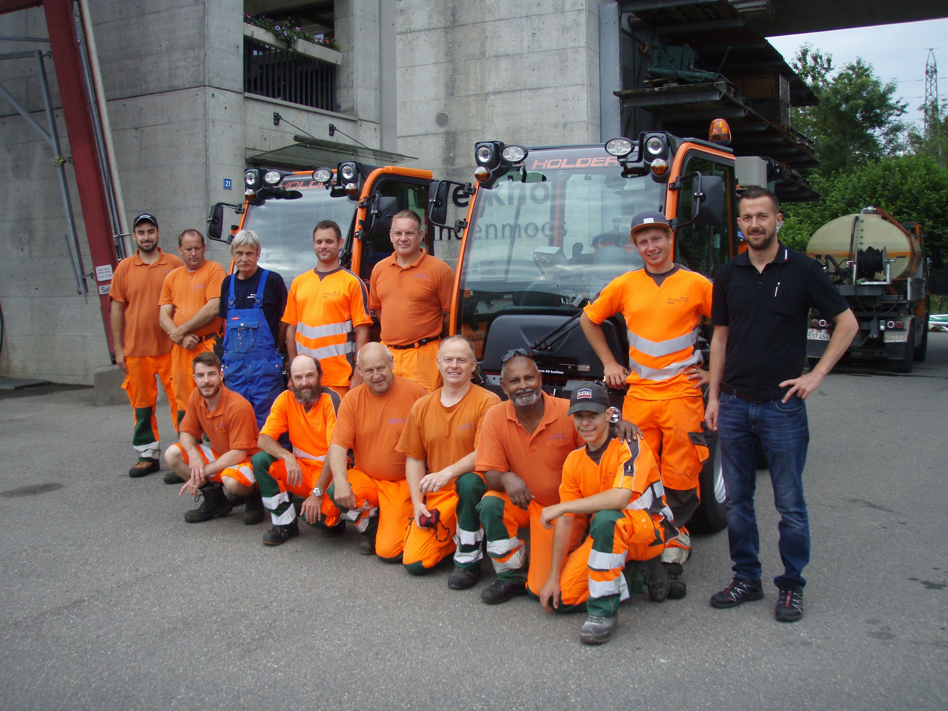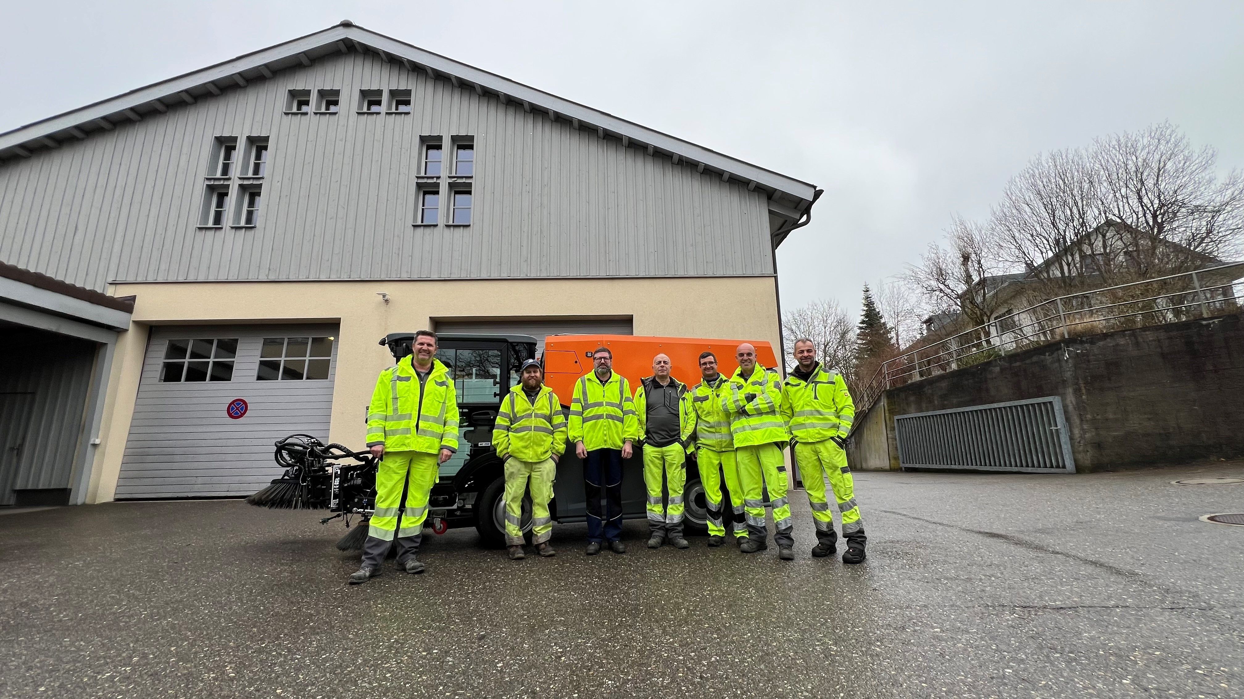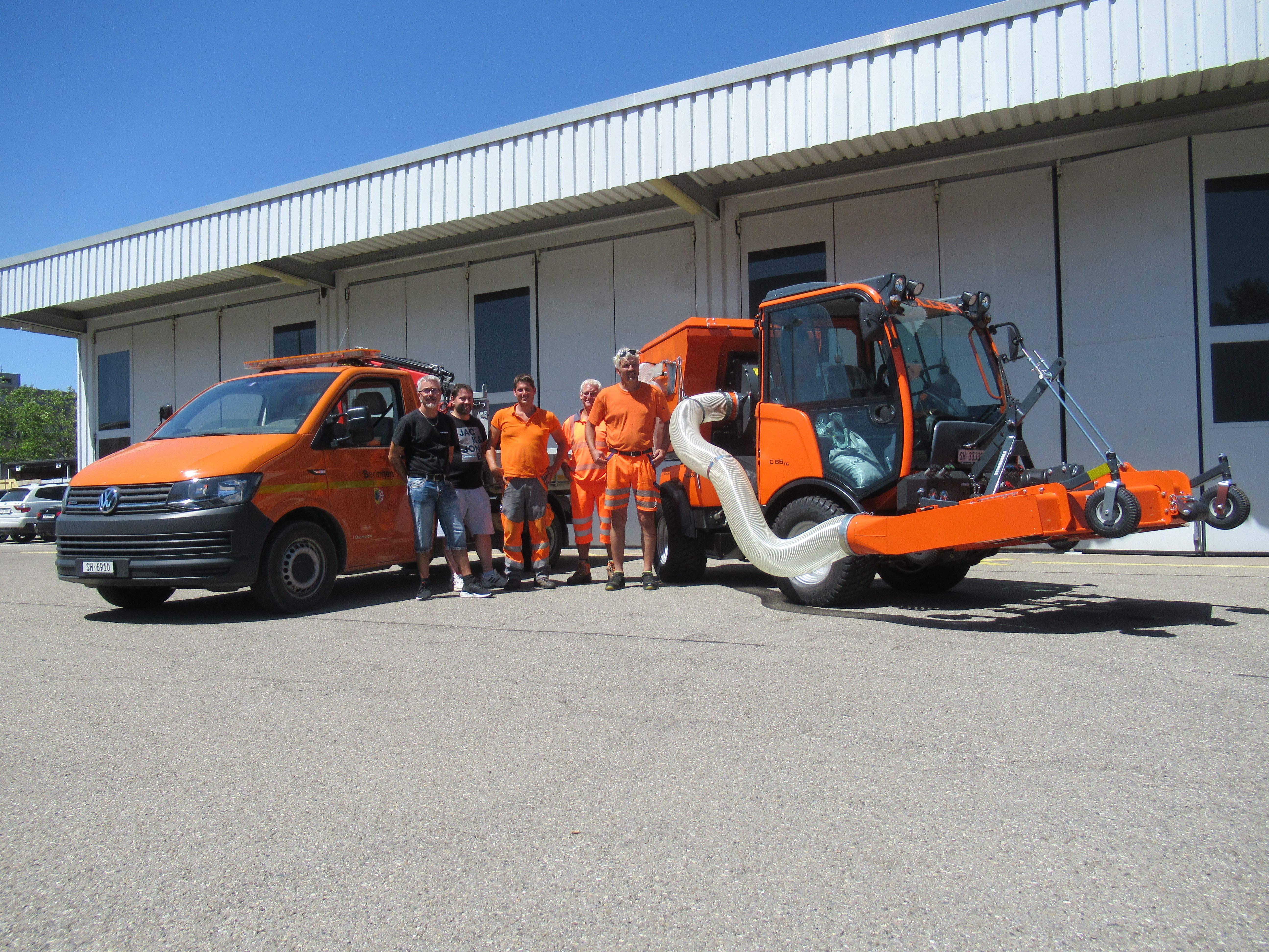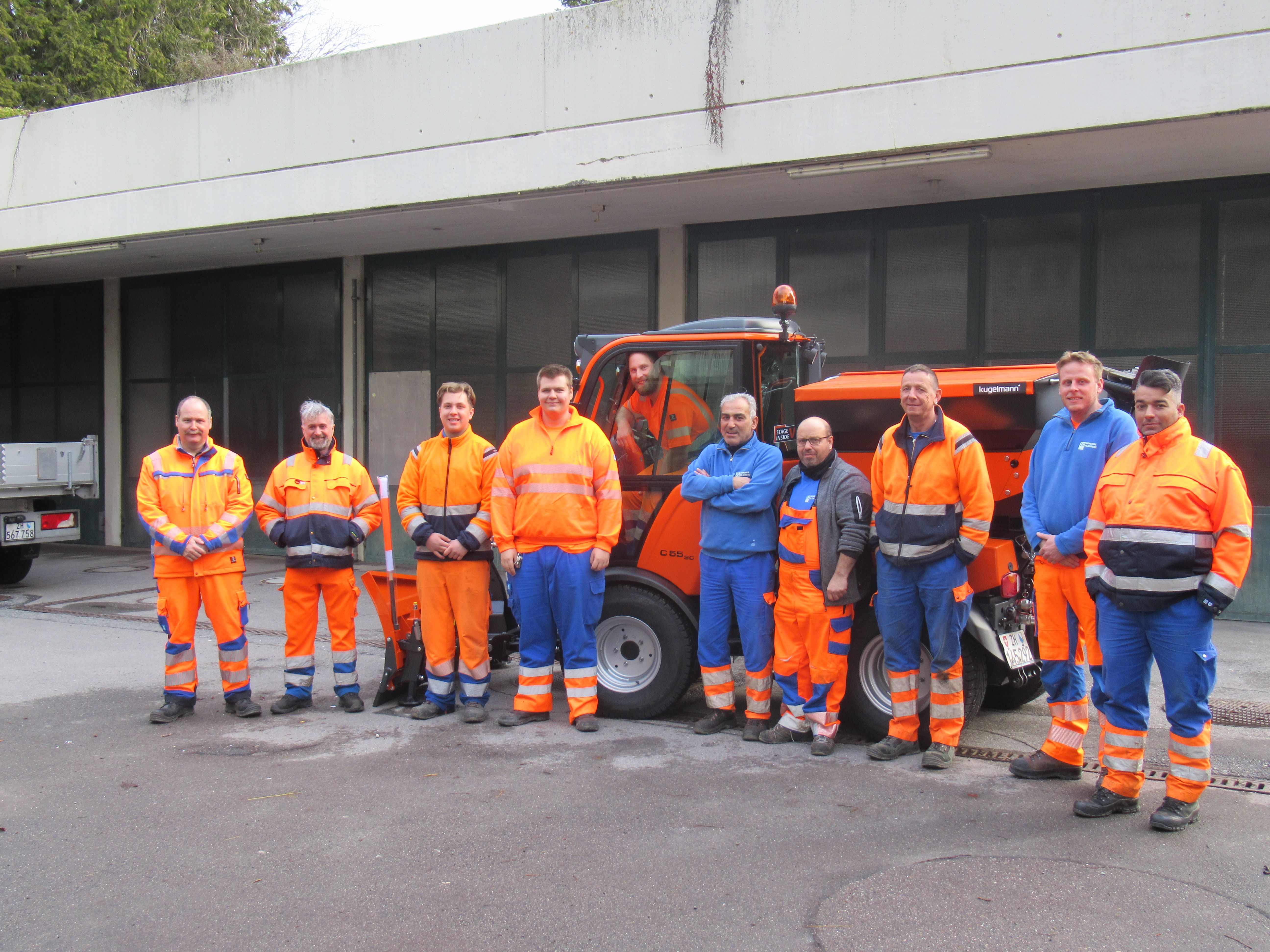 Werkhof Leiter Herr Gérald Gavin und sein Team freuten sich über das neue Gerät.