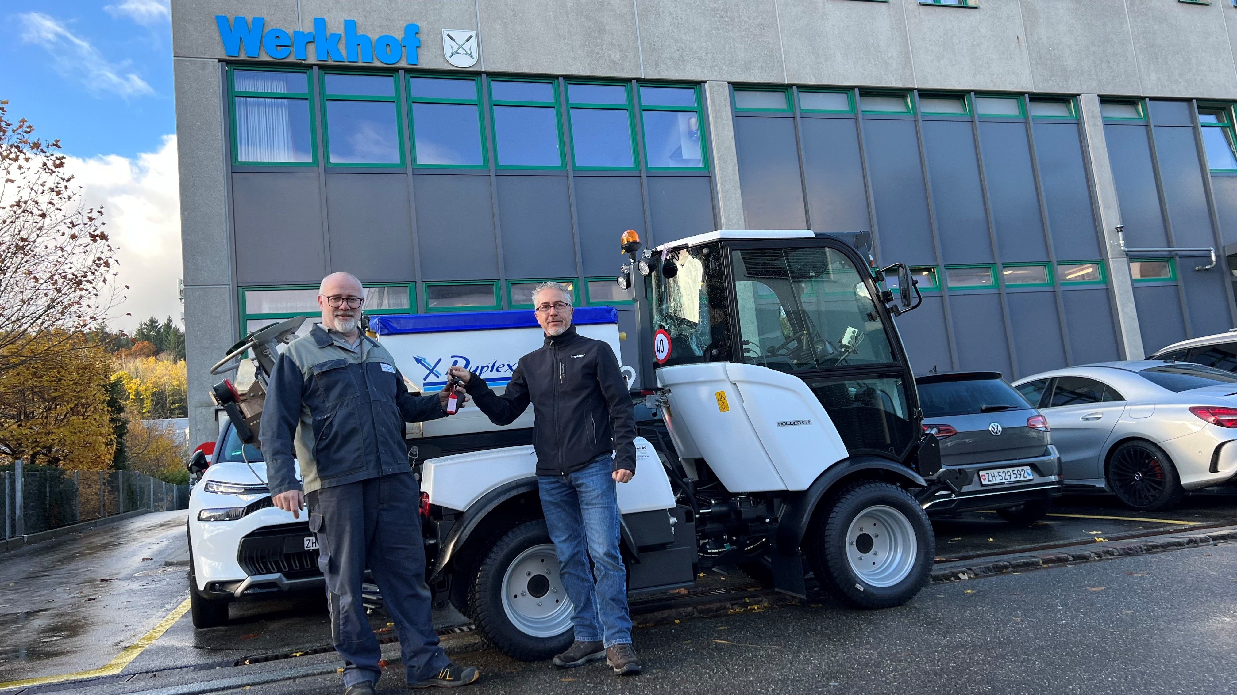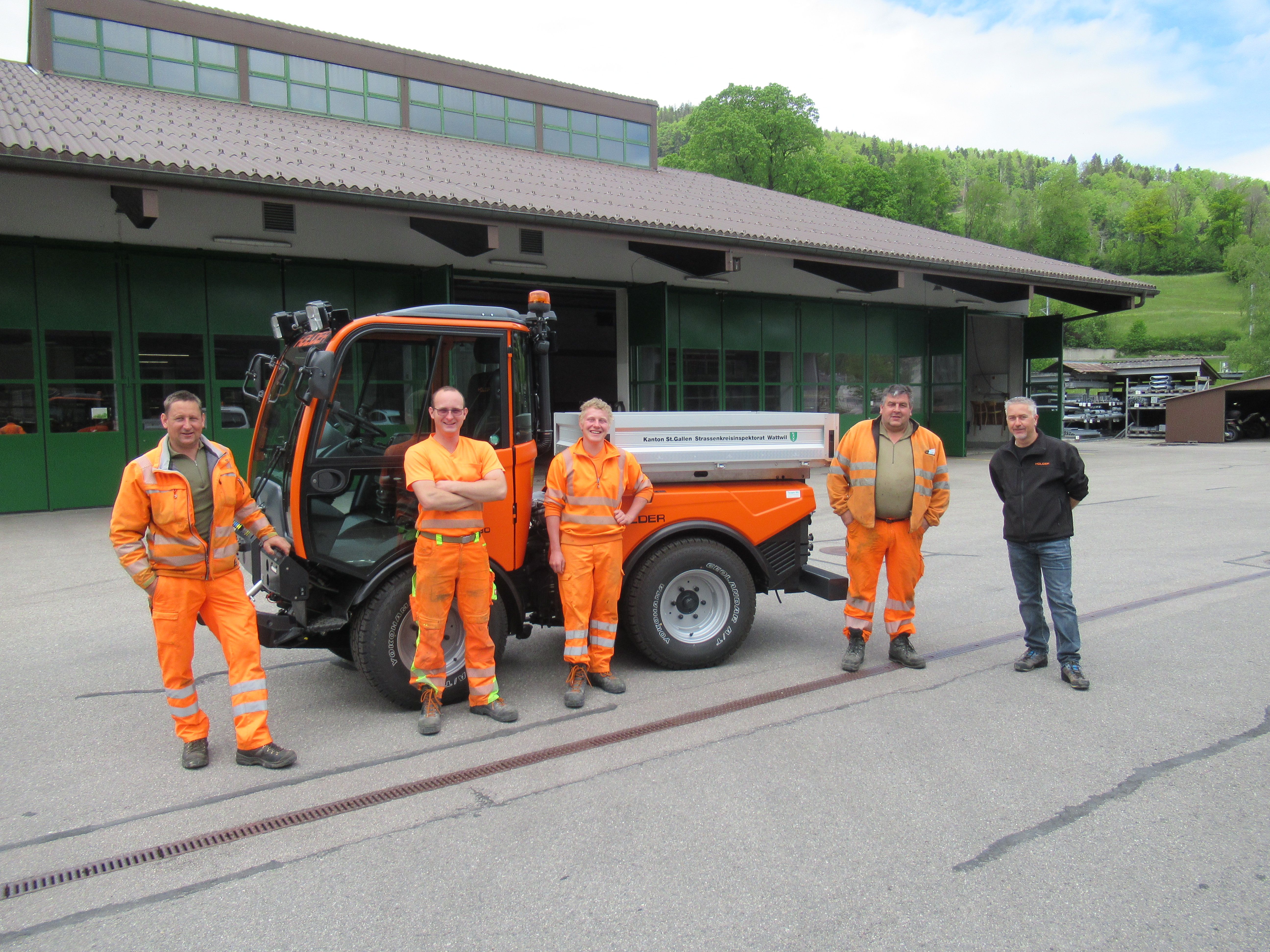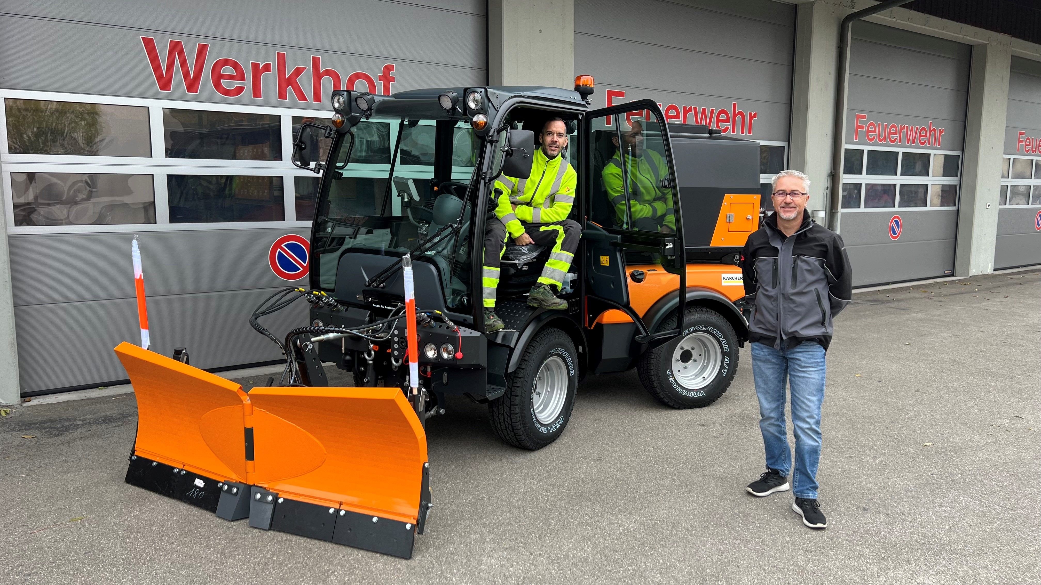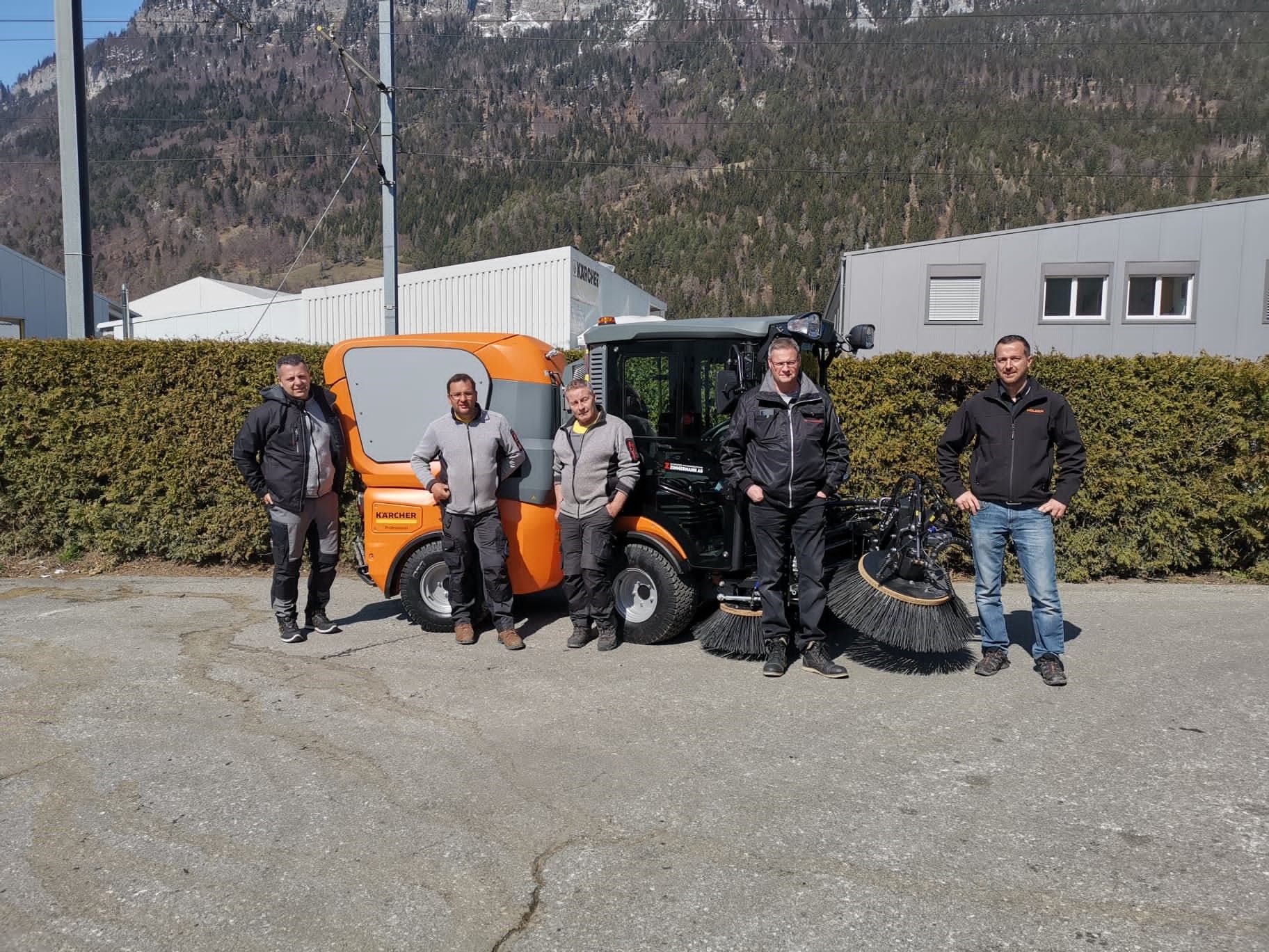 Werkhof Leiter Herr Gérald Gavin und sein Team freuten sich über das neue Gerät.