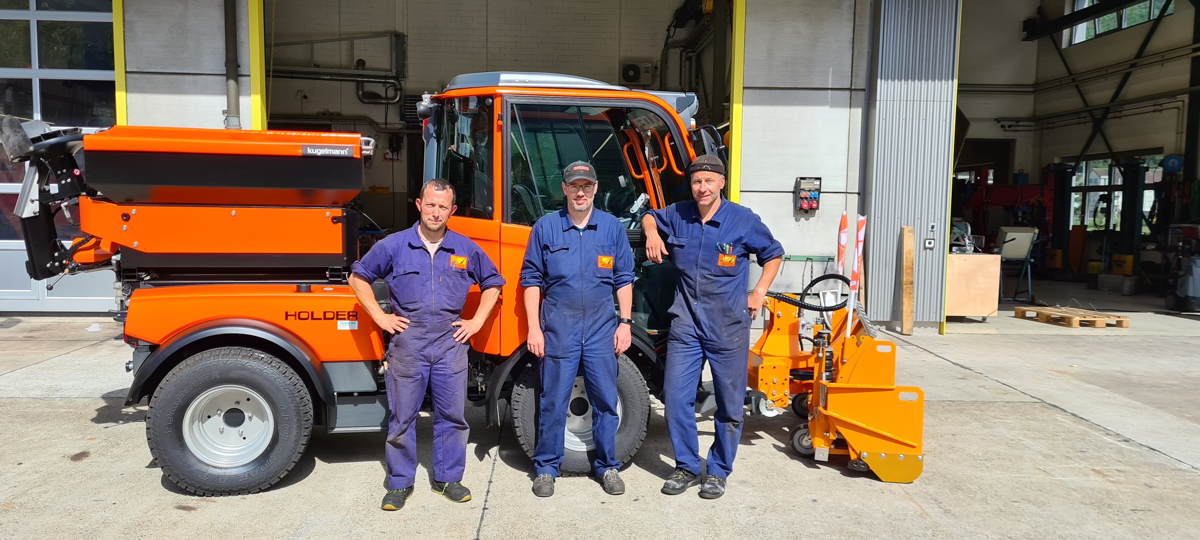Wir durften zusammen mit der Officina Jörf aus Tesserete einen Holder C665SC mit einer Kugelmann Kehrsaugmaschine E800 ausliefern. Für den Winterdienst wird der Holder mit einer Zaugg Schneefräse SF65 E-60 L140 ergänzt.