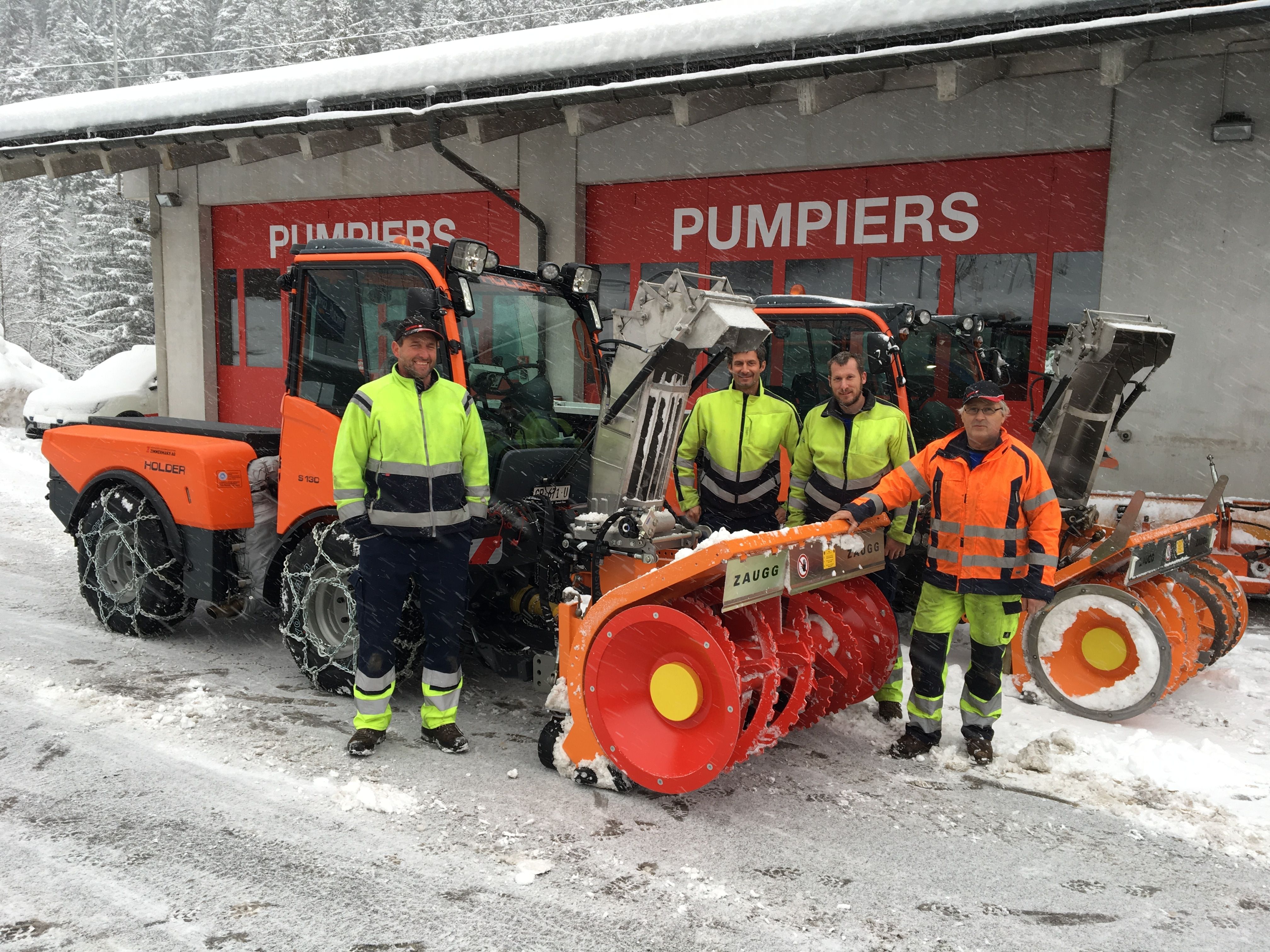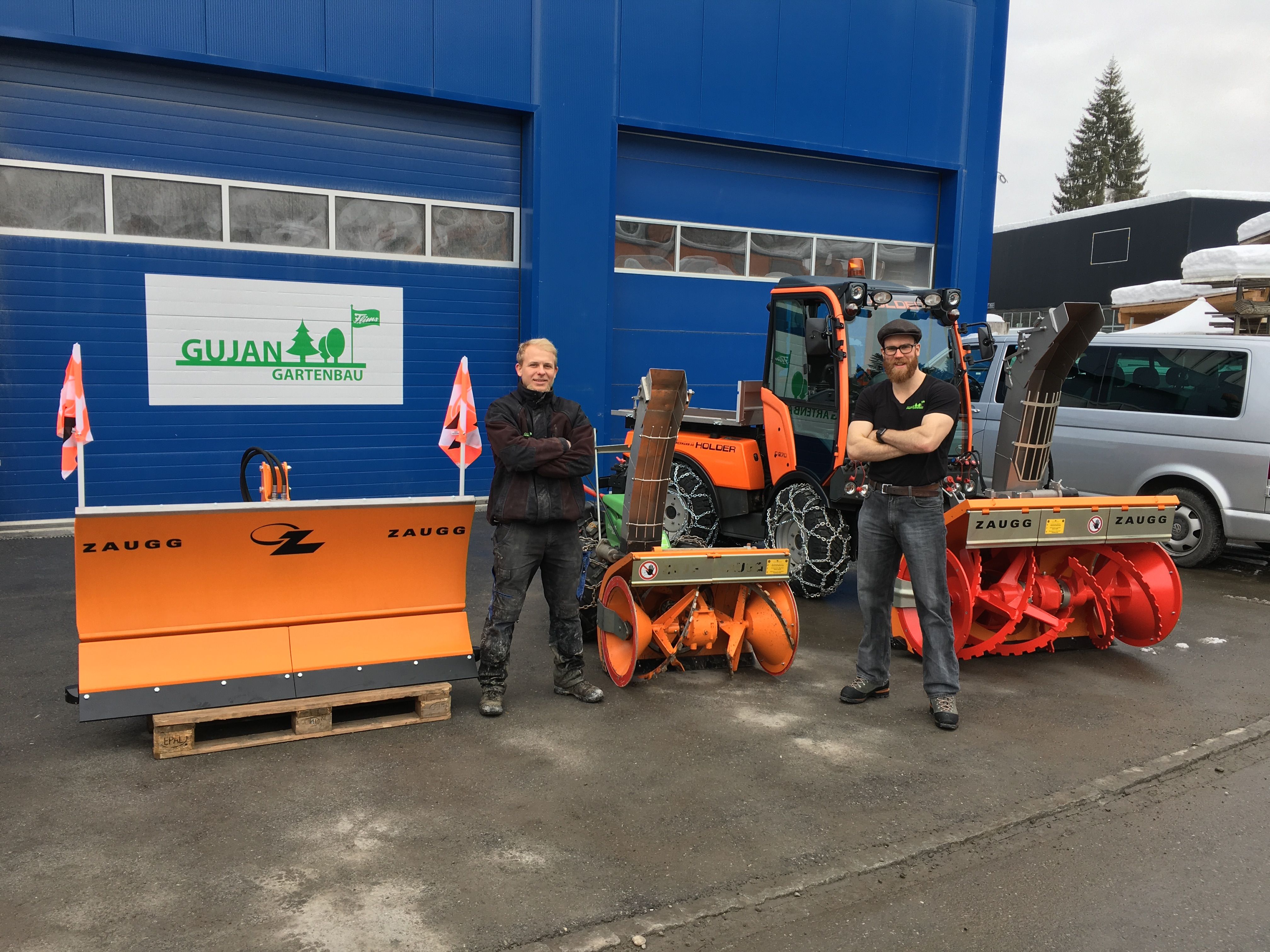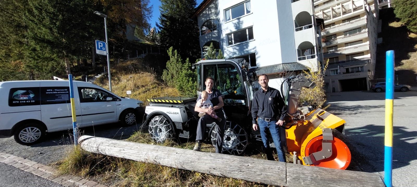 Gujan Gartenbau freut sich über den frisch gelieferten Holder C270. Zusammen mit einer neuen Zaugg Schneefräse und einem Zaugg Schneepflug sind sie bestens gewappnet für den Wintereinsatz um Flims.