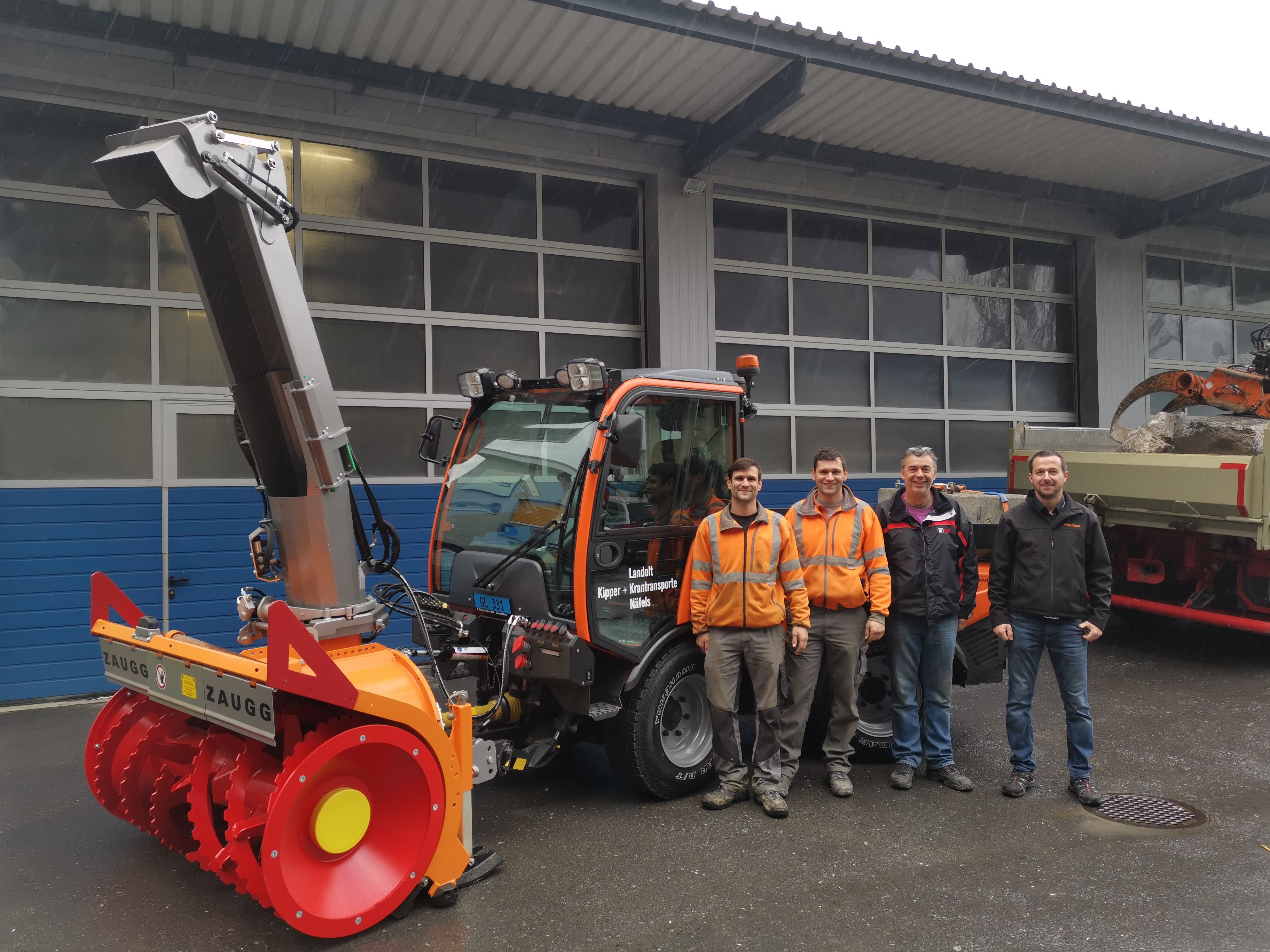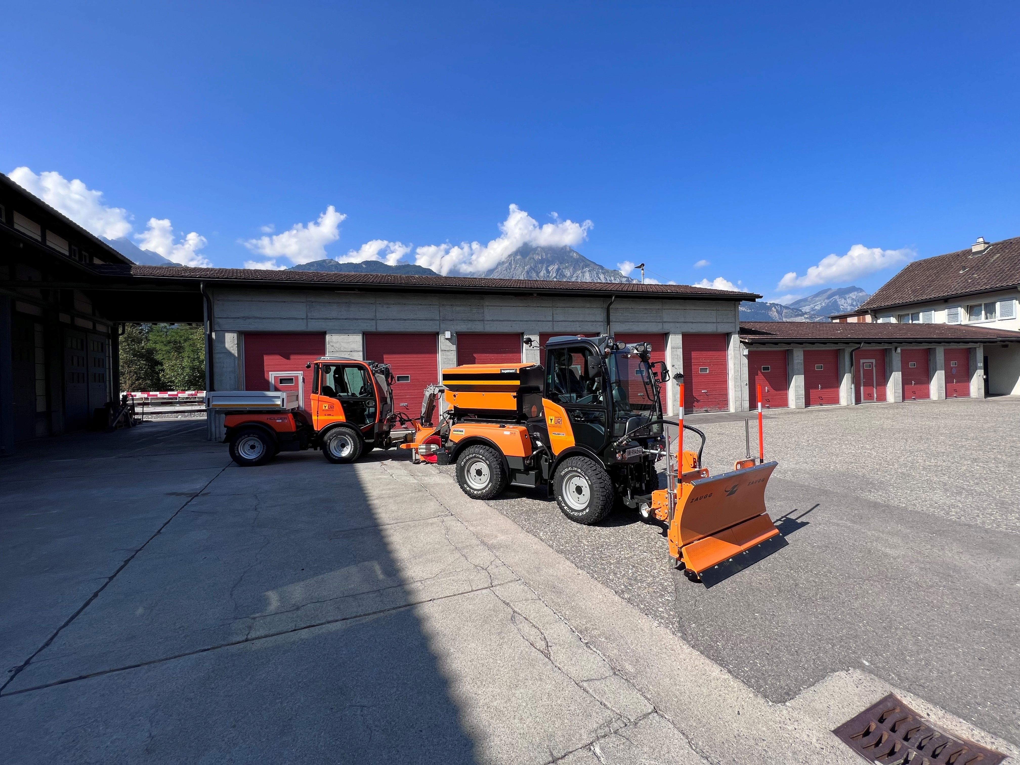 Im Winter kann das Werkteam auf eine Zaugg Schneefräse SF65-60-L140 sowie einen Zaugg Schneepflug G8K-180. zurückgreifen. Zusätzlich steht ein neuer Kugelmann Einkammerstreuer 630l parat.