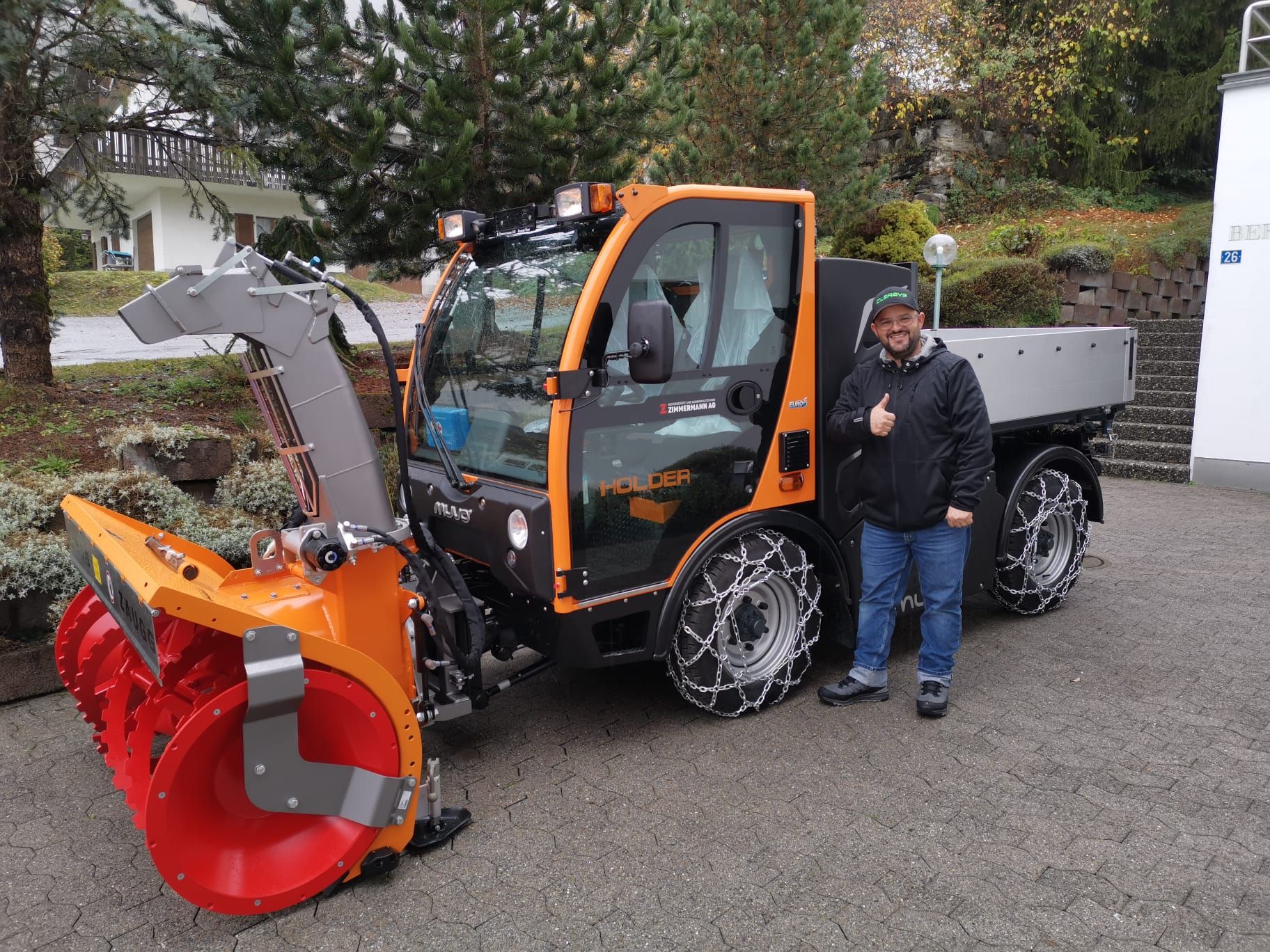 Wir durften Daniel Baumann, dem Inhaber der CLEASYS GmbH einen neuen Holder Muvo Euro 6 mit 109 PS inklusive einer Zaugg Schneefräse S65E-60 L160 übergeben.