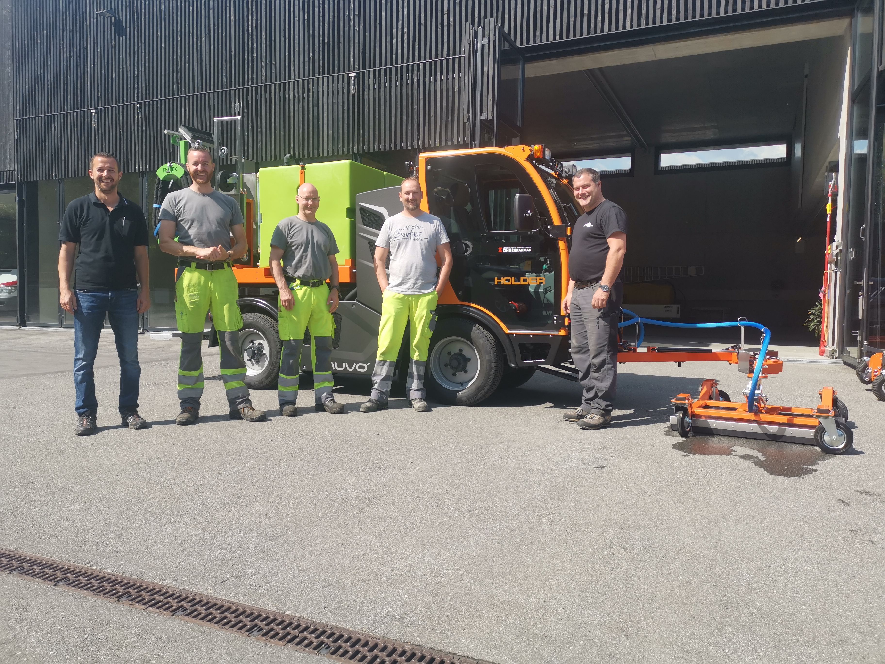Für die Gemeinde Thusis durften wir einen neuen Holder C 65C mit diversen Anbaugeräten ausrüsten. Für die Günflächenpflege steht ein Auslegemulcher BMS3530 von Humus zur Verfügung. Die neue schwenkbare Frontdüse wird im Einsatz gegen das Unkraut auf Wegen und Plätzen eingesetzt.