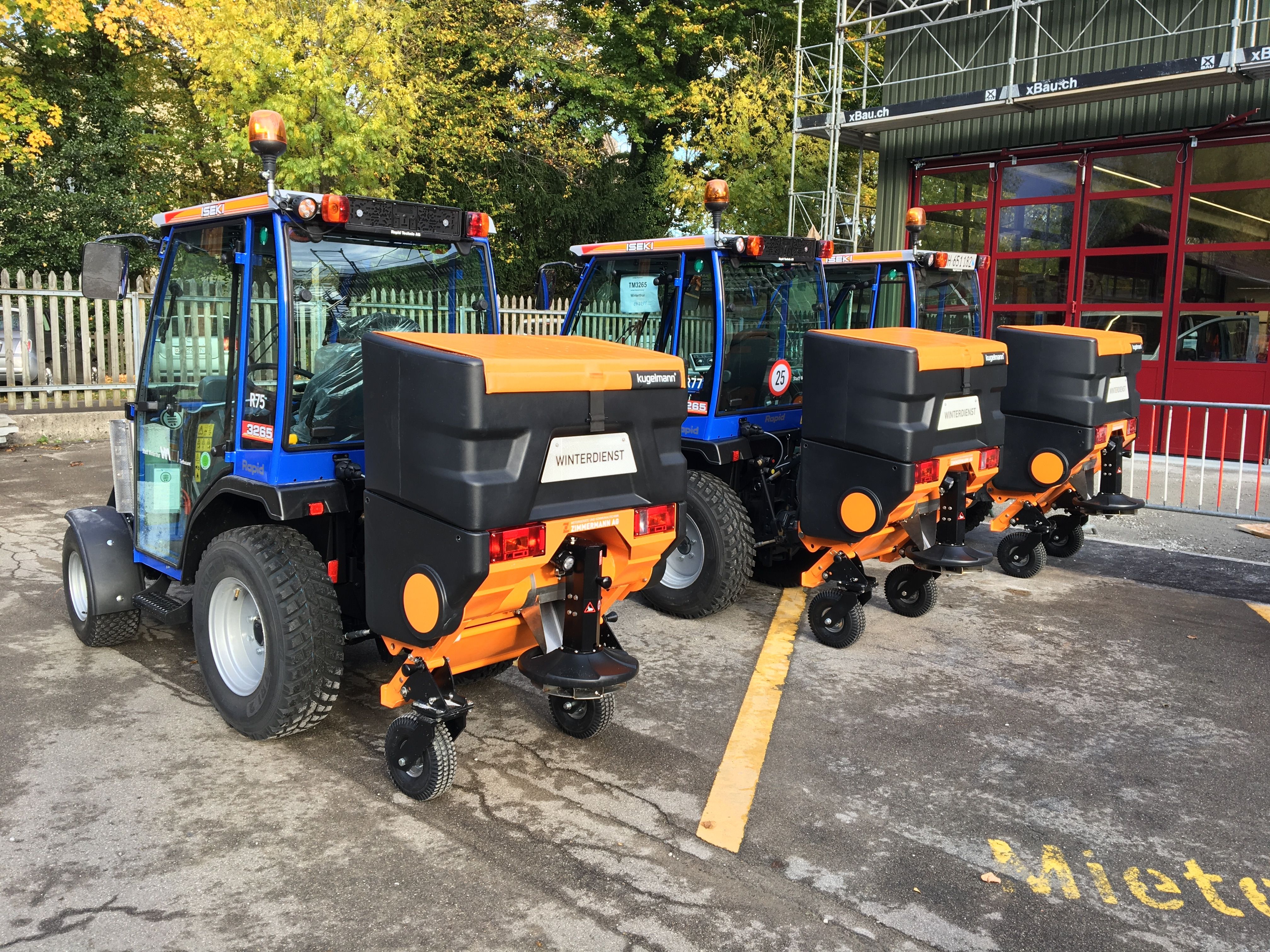 Die Stadt Winterthur streut ab diesem Winter mit neuen Kugelmann Salzstreuern D301. Speziell dabei sind die Nachlaufräder die dazu führen, dass die Achslasten eingehalten werden. Die Zimmermann AG bedankt sich für den Auftrag.